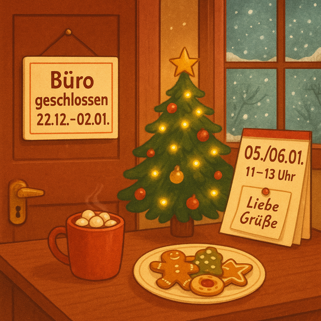 auch unser Schulbüro gönnt sich eine Portion Weihnachtsplätzchen, eine Mütze Schlaf und eine kurze Pause vom alltäglichen Trubel. Deshalb bleibt die Schule vom 22.12.2025 bis zum 02.01.2026 geschlossen.